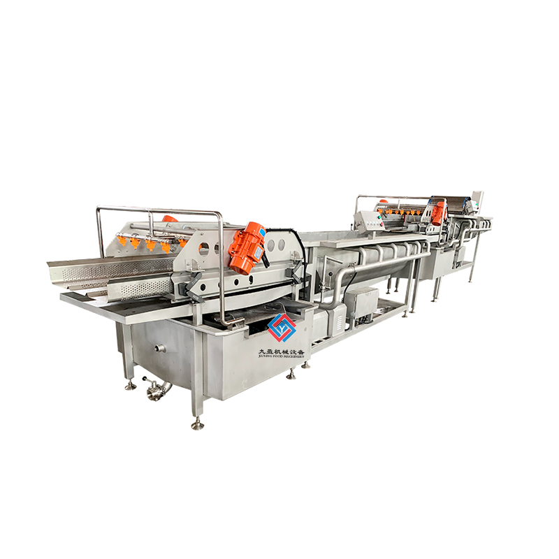 凈菜加工成套生產(chǎn)線是針對(duì)多種的蔬菜進(jìn)行清洗和加工處理的,可以將蔬菜表面的泥土進(jìn)行清洗干凈,還能夠?qū)κ卟诉M(jìn)行農(nóng)殘?zhí)幚恚梢詫⑹卟说霓r(nóng)藥進(jìn)行分解,提升蔬菜的品質(zhì)程度,通過清洗之后的蔬菜輸送到震動(dòng)篩進(jìn)行麗水處理,能夠?qū)⑹卟松洗蟛糠值乃譃r干,之后輸送到風(fēng)干設(shè)備上可以將蔬菜的表面水分更加充分的蒸發(fā),之后再進(jìn)行整理過后可以進(jìn)行真空包裝處理,經(jīng)過真空包裝處理之后的蔬菜可以延長保鮮時(shí)間,建議填充質(zhì)量的氮?dú)饪梢允贡ur效果好。